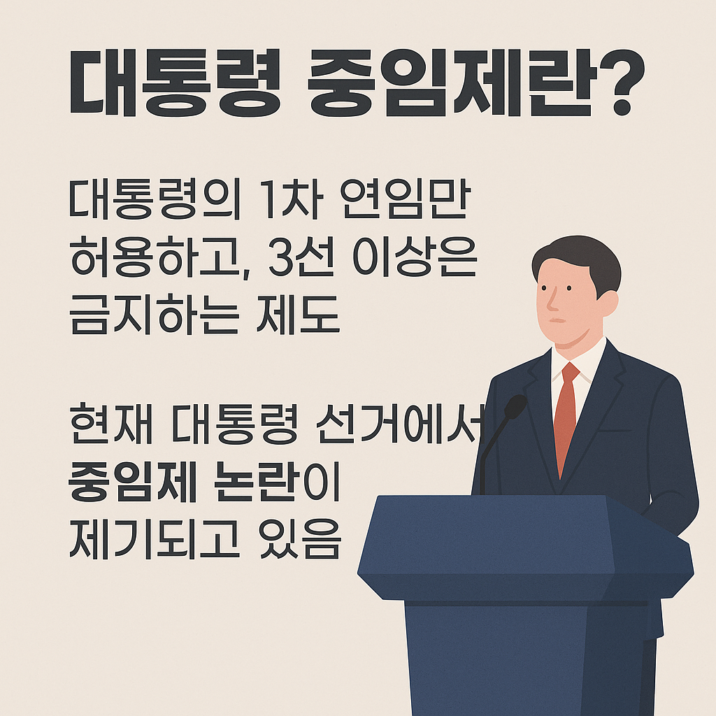 2025년 대통령 선거를 앞두고 ‘대통령 중임제’가 정치권과 국민들 사이에서 뜨거운 논쟁거리로 떠오르고 있습니다. 이번 글에서는 대통령 중임제의 개념, 현재 논란이 되는 이유, 그리고 찬반 의견을 정리해 보겠습니다.